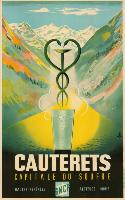 Sites et panoramas de haute montagne par les remontées mécaniques de Barèges - Funiculaire de l'Ayré, Téléphérique de la Laquette - Affiche originale de R. A. Drouot (ca 1954)