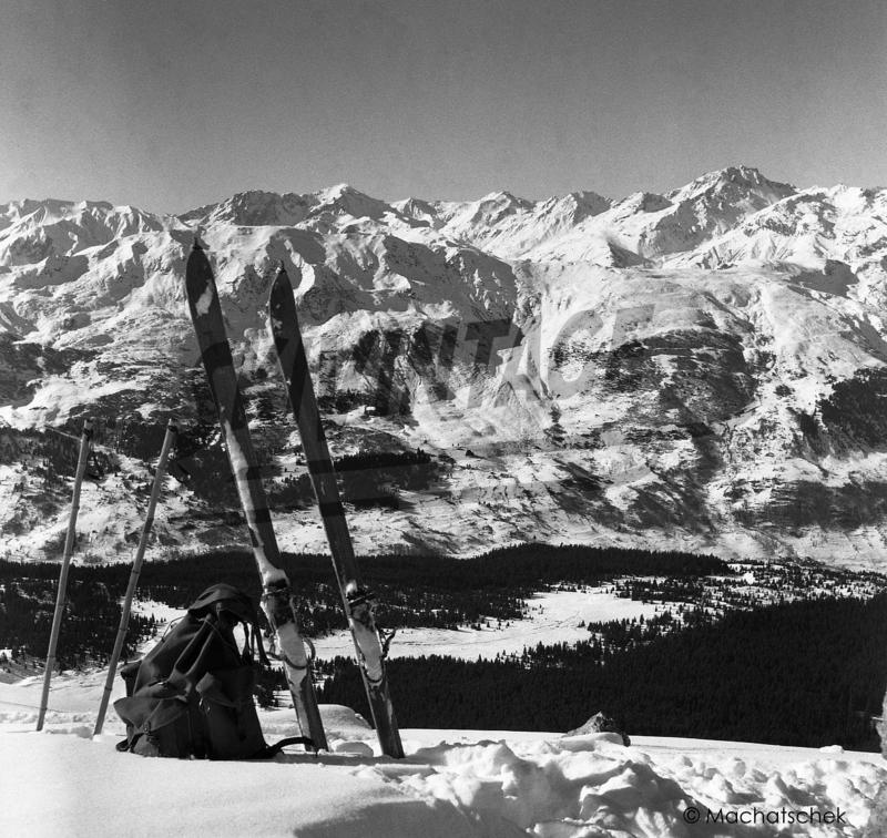 MERIBEL - APERCU DE LA VALLEE DES ALLUES DU COL DE LA LOZE- retirage photo Machatschek (1949)